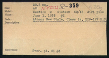 | References: | Publication: Agora XXVI Publication Pages (4) Deposit: N 20:6 Notebook: Ω-2 Notebook: Ω-6 Notebook Page: Ω-2-58 (pp. 303-304) Notebook Page: Ω-6-80 (pp. 1151-1152) Card: Ω-359 |