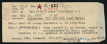| References: | Publication: Agora XXVI Publication Page: Agora 26, s. 212, p. 186 Publication Page: Agora 26, s. 376, p. 350 Image: 2012.74.1547 (85-5-35) Notebook: Ω-10 Notebook Page: Ω-10-95 (pp. 1981-1982) Card: Ω-431 Card: Ω-431 |