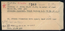 | References: | Publication: Agora XXVI Publication Page: Agora 26, s. 176, p. 150 Publication Page: Agora 26, s. 363, p. 337 Image: 2012.78.0485 (91-28-9) Card: Γ-368 |
