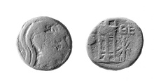 | Reverse: | Α?-ΘΕ Tripod; in field l., poppy; in field r., thunderbolt. | |