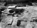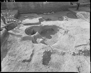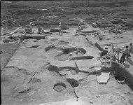 | Description: | Debris filling in a bronze casting pit and workshop, characterized by mold fragments but including also a few plain vases and fragments of wine jars. Third quarter of 4th. c. BC. The pit was cut into the soft bedrock to a depth of -1.43m and is 1.70m wide at its broadest extremity. The ground plan is that of a slightly lop-sided keyhole. The preserved length of the pit is 4.80m., of which the dromos takes up 3.10m. The dromos was 0.60m wide and descended into the pit proper in 5 steps, also cut into the bedrock. | |