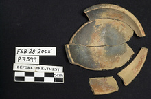 | Contents: | Organic material: "small fragments of burned bone" (missing) | |
