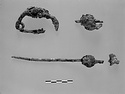| Description: | Grave 2 in notebook (E.L. Smithson: Grave XV: PG). Urn cremation (trench-and-hole), adult female. JP It consists of a roughly rectangular pit or trench cut into bedrock to a depth of 0.35m., measuring 1.12m long and 0.67m wide. The trench was oriented east-west, urn-hole to the east. The fill of what remained of the pyre trench contained much burned debris, especially in the western part of the tomb. The urn-hole, cut to a depth of 0.62m., measured roughly 0.40m in diameter. the urn-hole itself, but not the rectangular trench of the tomb, was sealed by a large, flat stone, broken in situ. Textile pseudomorphs were noted along with animal bones, some heavily burned. | |