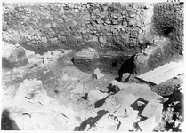 | Description: | Grave 2. Urn cremation (trench-and-hole). In some records as XXIII. Variously labeled as grid 7/Δ, 7/Γ and 7/Γ-Δ. Rectangular pyre trench cut through earth into bedrock, with only the lowest 0.04m surviving. The exact orientation of the trench has not noted in the field, but it appears to have been roughly oriented east to west (or east-southeast to west-northwest). The pyre trench measured about 1.25m long and was 0.52 m wide. The trench floor comprised what appeared to be scorched earth; it contained a few sherds, described by the excavator as being of "small bowls". The urn-hole was located at the east end of the pyre trench; its diameter and depth were not recorded, but judging from the cover stones the pit probably measured just under 0.50m in diameter and was about 0.35m deep. In it, a neck-handled amphora , which served as cinerary urn, was placed in an upright position; it contained the cremated remains of an individual described as an adolescent aged 10-14 years at death. Analysis of the human remains showed that the cinerary urn contained a small child, no more than two years old. See also P 34860-P 34866 catalogued as "sherds overlying tombs F 16:3 & F 16:4". | |