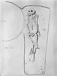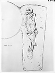 | Description: | Grave 19 in notebook. Bones only AA 3. Length 2.15m; width 0.63m; depth 0.52m. Woman' skeleton with head at north. Cover slabs piled at foot of grave, probably by the diggers of Well J 18:8, who rifled grave. | |