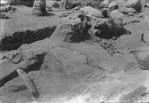 | Description: | Grave 20 in notebook. Objects recorded in nb. from Grave 21 (earlier and disturbed by Grave 20) are included here. A pyre [using pieces of pots from Grave 21] was probably burned beside grave 20 and some of the remains were thrown in. Male with head toward northeast. Offerings placed at feet. Grave filled with ashes and cinders, including fragments of pottery. Sealed with slabs, more burned matter and fragments of pots joining those inside grave. | |
