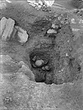 | Description: | Grave 8 in notebook. Inhumation in Tholos Cemetery. Length of shaft 1.75m; Width at upper end 0.95m; Depth from cover 0.70m. One end cut into sloping rock. Skeleton of a woman, with head southeast. Most offerings near upper body. Over body, earth fill; above fill of ashes and cinders of ca. 0.10m; on top fine earth which had sifted through slabs. Just under slabs ca. 0.20m of empty space. | |