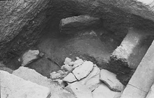 | Description: | Grave 2 (bis). Cut into by builders of I 5:2. No remains. Possible contents in I 4-5:1 Layer C (= layer 6, lower building fill), catalogued as ΒΓ 2065 - ΒΓ 2125. | |