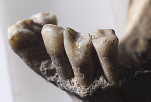 | Description: | Grave 5. Adult (female?) inhumation. Cist grave lined and covered with slabs of limestone, sandstone and schist. Cut into virgin soil under Royal Stoa at I/12,13-5/3,4. Grave measures 1.79x0.39-0.49x ca. 0.30 deep, oriented ne-sw. Skeleton buried with knees raised, lying on her back. Left arm bent so hand rests on shoulder. Lower right arm across body. Grave of a woman about 50. Very large and muscular woman. Contained small neck amphora resting on skeleton's knees, upside down. | |