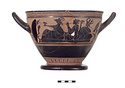 | Description: | Deposit of terracottas, molds and pottery in a shallow pit sloping downward from north to south. This deposit was located beneath a layer of fill under a Late Roman plaster floor (Lots ΒΕ 2093-2095). The deposit was cut at its south end by the Byzantine/Late Roman disturbance excavated in Lots ΒΕ 2087-2088, which explains the presence of terracottas in those contexts. From different grids but nearby: T 4351, T 4352, T 4353. | |
