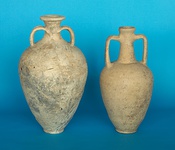 | Description: | A deposit of six amphorae and one micaceous water jar was excavated between 20 June and 6 July 2005 in the area north of Wall K. The neck and one handle of one of the amphorae (BZ 1213) had been poking out of the surrounding fill since the end of the 2001 season. We removed two layers of fill in the area around this amphora, the first of which (lot 1540) was highly contaminated and contained material dating from the Late Geometric through the Byzantine periods. The second layer of fill (lot 1541) excavated around the amphora dated to the early Roman period (c. 1st century A.D.), and after we removed this layer of fill we revealed the outlines of five more amphorae and one micaceous water jar. The vessels were carefully removed one by one. Along with the one whole amphora (BZ 1213), two mended amphorae (BZ 1262 & 1263) and the micaceous water jar (BZ 1264), there were also in-situ fragments of three other amphorae, but the necks, handles, and/or bases of these amphorae were missing and the vessels were therefore not mended (the fragments of these three amphorae can be found in the pottery tins). NOTE: This deposit was first excavated 1-2 August 2001 as a "Late Roman layer with complete vessels" (elev. 53.040-53.370 masl, J/17,18-1/6,8). The finds included BZ 669 and BZ 756. Both vessels were left in situ and the deposit was left unexcavated until the 2005 season. BZ 669 was given the number BZ 1213 during the 2005 season (the excavator did not know that a section number was given to the in situ amphora). The remaining fragments of amphora BZ 756 can be found in the pottery tins BZ 1540-1541. | |