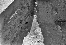 | Description: | The pyre was uncovered in a small, triangular area between the BZ Building foundations (but at a lower level) and the northern scarp of the current excavation area. It rested in a patch of orange-brown fill left over after scarping operations related to the BZ Building foundations in 2004. The pots were deposited over an area of 1.15m. x 0.50m. Found amongst the pyre fill were pieces of burnt bone, concentrated areas of charcoal, and iron slag. All finds were kept, as was the fill, for future analysis and flotation. No evidence of an associated floor surface came to light. At the time of writing, the finds from the pyre and associated pottery (baulk cleaning, 1701, 1702) are still in conservation. They will be pieced together by conservation and then examined in detail by another supervisor, Marcie Handler, during autumn 2006. The preliminary date for this pyre is Early Hellenistic. This will no doubt be refined once the pottery is examined in detail. | |