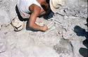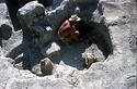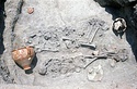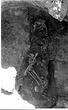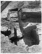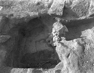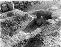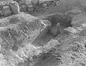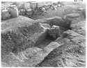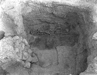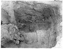 | Description: | Mycenaean Chamber Tomb below Middle Stoa Terrace. The tomb was entered from the west by a stepped dromos, at least 4.20m long by 1.10 to 1.50m. wide, splaying slightly toward the doorway, which was 1.26m high by 0.60m wide at the base with a lightly arched top. The doorway was found blocked with a stone packing, which included near its top a broken conglomerate grave marker, and which proved to have been erected at least three times; during one of the occasions of reopening, the doorway was widened 0.20m to the north. The chamber, while described as a "small irregular trapezoid", is of about average size and actually quite rectangular by Agora standards. As in most cases, it is broader than deep (2.72m by 1.75m). Although the roof had collapsed, the walls were preserved to an average height of 1.35m. Four burials were found undisturbed laid out parallel with an east-west direction, in all but one case facing the door. The greatest interest attaches to the remains of rotted white wood which surrounded both these skeletons, and was especially well preserved in Burial D. These fibrous remains seem certainly to represent coffins rather than biers, perhaps rough unsmoothed boxes of cypress or pine measuring 1.65m long by 0.45m. broad and about 0.40-0.43m high. Although there were four burials, these must have taken place within a generation of a single family: The father (burial C) and son (burial D), were buried at the same time, having died in battle or the hunt and "brought home from the field in hastily constructed boxes" or possibly the victims of a disease " which made it desirable that they be kept in coffins until a tomb could be excavated for them", then, after a slight fall of the roof, the mother (burial A) at the opposite side of the doorway, and finally, after a more serious slide, the adolescent boy (burial B) in front of the doorway. | |
