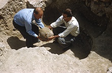 Description:   Cremation burial (trench-and-hole) under S. edge of E-W Street, northern burial. In some records as Grave XLVII.