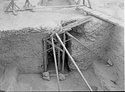 | Description: | Mycenaean Chamber Tomb occupies a considerable part of the western half of section ΕΕ; lies about half way up the north slope of the Areopagus towards its eastern end, just below the highest point of the hill. The tomb consists of a roughly rectangular chamber approached from the north by a long dromos. it is entirely hewn out of the rock of the hill and except for the wall of rough stones that blocked the doorway, there is no masonry. The rock from which it is cut, is the greenish clayey shale which underlies most of the Agora area. The dromos has a preserved length of about eleven meters. It was originally several meters longer but its northern end was cut off by a late Roman retaining wall. For most of its length it is about two meters wide, but near the door of the chamber it widens slightly to about 2.40m. Its sides are not vertical, but slope slightly inward so that the highest preserved point the width is only about 1.50m. The floor of the dromos is not quite level but slopes very slightly downwards toward the chamber, being about 20 cm lower in front of the door, than it is at the outer end. The maximum preserved depth in front of the doorway is about 2.90m but originally it must have been a meter or two deeper, for the surface of bedrock has been considerably cut down here in modern and ancient times. The fill of the dromos was uniform throughout its length: soft clean greenish earth with pebbles and occasional small stones; few sherds. The only disturbances in this fill were three pits of the Turkish period near the north end. The door or entrance passage is narrower than the dromos (width ca. 1.20m and narrows very slightly to about 1.10m at the top; maximum height 2.40m). It is tunneled into the bedrock and has a slightly rounded roof which is nowhere very well preserved. Its outer or northern end was blocked by a neatly made dry wall of rough field stones. This wall was 1.40m thick and ran right up to the roof of the passage. It had obviously never been disturbed since the day it was built. When we removed the wall we were able to support the crumbly bedrock roof with plaster and iron rods. No objects of any sort were found either in or under the wall. The inner and southern end of the entrance passage was filed with fallen bedrock from its own roof and eat side. The chamber (max N-S dimension 4.30m, max E-W dimension 5.90m, max height 2.75m) is roughly rectangular in shape and is entirely hollowed out of the rock. It is not symmetrically set with the dromos, but it is set at a slight angle. Its sides are not straight, either vertically and horizontally; its angles are not right angles; Its corners are rounded. Its roof has entirely caved in, except for a small bit projecting at the north end of the west side; probably was not flat but slightly concave (all along the north side it seems that it rises from the sides toward the center). Across the east and west ends of the chamber there is a low rock-cut bench (average width 0.75m; average height 0.60m). There is only one grave cutting in the floor of the chamber, neatly placed in the SW corner (1.80m length; 0.60m width; 1.20m depth). Its cover slab, a piece of grayish slaty stone (1.90m length; 0.60m width; 0.15m thickness), lay on the floor beside it. The fill in and above the chamber had not been seriously disturbed since Mycenaean times. High above the chamber to the south, about five meters above its floor, is the remains of a wall of a late Roman house, part of which passed over the southwest corner of the chamber and had to be removed. About a meter below this, and again over the southwest quarter of the chamber, was a corner of light rubble wall of late hellenistic times. Neither of these walls disturbed the tomb proper in any way. Body and offerings were removed from the grave not long after they had been placed there (Mycenaean times); the chamber must had been entered by digging down from the top in the western half. | |