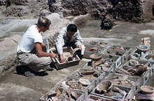 Carefully dug with a series of eleven steps 0.50m apart on one side of the shaft, ending 1.00m above the bottom. The inflow of water during excavation was rapid. The bulk of the pottery (19 boxes) came from the top 2,5m. There was no stratification.