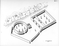 Title:   Cut-away isometric drawing of the Tholos and Old Bouleuterion, c. 450 B.C.