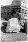 | Description: | Fragment from lower block of giant pedestal retaining moldings on one side; no relief. Lewis hole and one of its two dowel holes in the top. Note small joining slab on top. From Odeion. Pentelic marble. | |