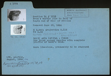 | Description: | One front corner remains with complete profile of hawk's beak. Travertine-like limestone presumably to be stuccoed. From Square Peristyle, South Stoa II. | |