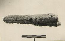 | Description: | Hawk's beak crown, broken at both ends and below middle of undercut. Traces of red and blue Doric leaf. Stoa Poikile series. Poros. | |