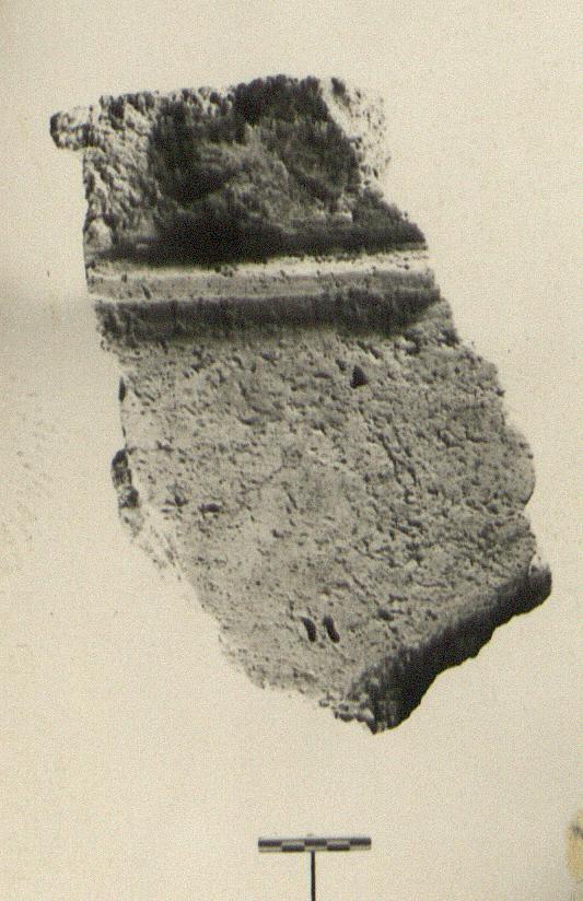 | Description: | Fragment of interior course. Top and front surfaces preserved except for molding broken at top; other sides broken. Stoa Poikile series. Poros. | |