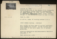 | Description: | Full height and main mass of corner capital preserved, much damaged all around. Of the volutes only about half of one and a small bit of another preserved. Pentelic marble. Same series as A 1130 (ΙΙ 514). ADDENDA Detailed description and measurements by Bakalakis in ÖJh XXXVI, p. 60. | |