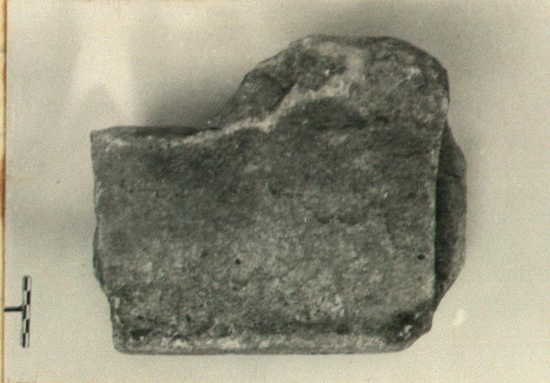 | Description: | Broken at left, and in back below. Joint preserved at right end. Very badly weathered. Trace of astragal molding along top of face. From the Temple of Hephaistos (?). Island marble. ADDENDA Weathering of back, especially adjacent to joint, suggests that this is a flank and not at raking sima (CNE, September 1967). | |