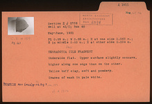 | Description: | Underside flat. Upper surface slightly concave, higher along one edge than on the other. Yellow buff clay, soft and powdery. Traces of wash in pale white. Cf. A 1912 (Σ 2759). | |