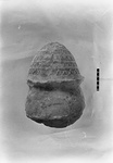 | Description: | Large end broken all around. Small end has joint surface with anathyrosis at back. A round hole in small end 0.05m. from joint surface contains remains of iron pin. The omphalos-shaped small end curves out to a flange below which the same curve is repeated. Below the second flange the surface begins to curve in. The small end decorated with zigzag and saw tooth bands in low relief. Addenda: Represent incense burner/plemochoe with penetrated lid. Pentelic marble. | |