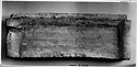 | Description: | A lintel for a single-leafed door, 0.80m. wide. The overhang has two rectilinear and two concave moldings. Triangular cuttings at each end for inserting tenons of door jambs. The cutting for the door is 0.04m. deeper than the under face of the overhang; pivot hole at one end. Pentelic marble. Built into south door of narthex. | |