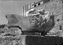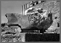 Description:   Full height preserved, one end and back broken away; anathyrosis on preserved end. Evidence of clamp-cuttings on top. 0.350m. back from the front horizontal cornice, the top is finished at an angle to receive the raking cornice.