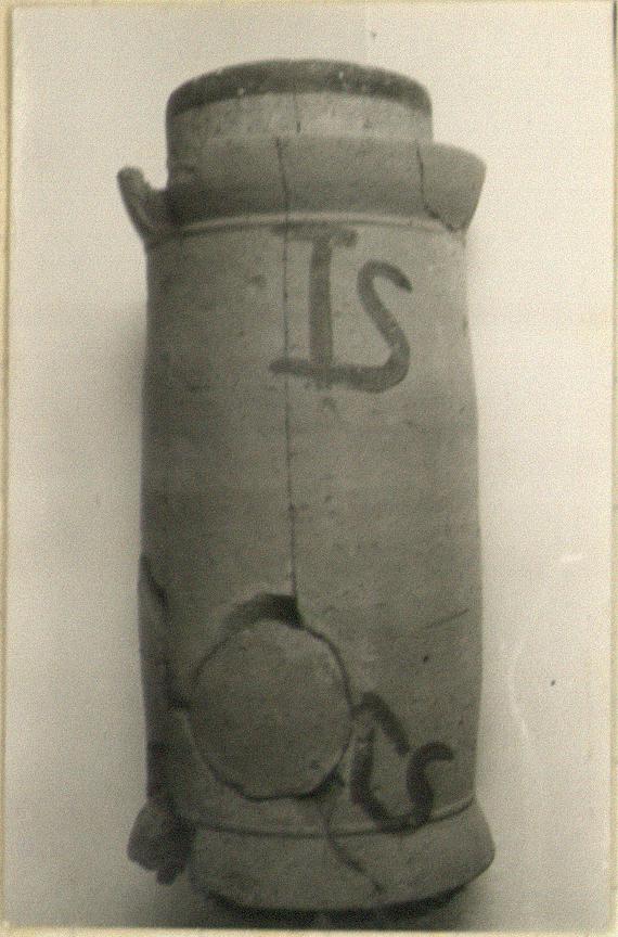 | Context: | Found in position in the archaic pipe line that fed the Southeast Fountain House; cf. A 2600. | |