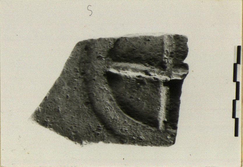| Description: | Broken all around. An emblem on wheel has been pressed into the clay. | |
