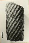 | Description: | a) Both ends broken jaggedly. b) Very jagged break at one end, the other flat, possibly cut. Spirally fluted, right hand twist. The two fragments may be part of one tapering column; in any case it is likely that they belonged to the same architectural complex for material and cut are the same. Dark gray micaceous stone in consistency between limestone and marble, with large lumps of carbonized material. | |