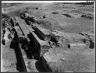 | Description: | Numerous fragments preserve less than half. Part of rim, wall and bottom, one handle and part of the other preserved. Flat rim, lug handles pierced. Band of dark glaze around rim, bottom and body. | |