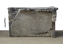 | Dimensions: | H. 0.67; W. 1.13, (cutting for stele) 0.12; Th. 0.047; L. (cutting for stele) 0.42 | |