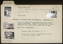 Description:   With dentils. One end, which bears anathyrosis, and bottom partly preserved. Other end picked and broken. Evidence of a lewis hole on top. Very poor workmanship.