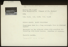 | Description: | Roughhewn down to a long rectangle from an original square (?). Decorated on two adjacent sides with acanthus alternating with water leaves. Acanthus at corners. Decoration as on A 3304. Early Christian. Pentelic marble. | |