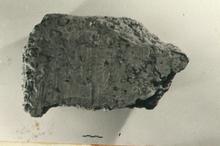 | Description: | Of the two adjacent preserved edges one is smooth, the other has a tongue and groove joint. Traces of hydraulic cement on both faces; but not enough remains to show water deposit. From Klepsydra. Tan-colored fossiliferous poros. Cf. A 1269 and A 2438. | |