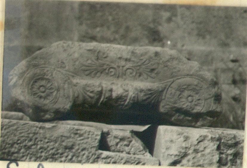 | Description: | Echinus carved with three egg and dart and palmettes at sides. Eyes of volutes carved with eight-petal rosettes around center eye. Volute over echinus carved with lotus rising from two spirals with seven-petalled palmette set sidewise at each side. Bolster plain. White marble. | |