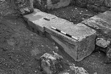 | Context: | Incorporated in east side of square distributing basin of Hadrianic water system at west edge of Panathenaic Way opposite S.W. corner of Eleusinion. | |