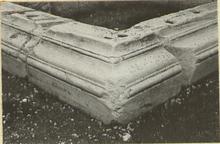 | Description: | Well preserved except for corner of lower torus, which is broken away. Corner block as A 3732 with same features. Upper surface has one lewis hole and a shallow cutting for a dovetail clamp on the return. Between these two is a circular cutting. Anathyrosis on both ends. Pentelic marble. | |