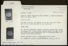 Dimensions:   Th. (rim) 0.04, (at middle) 0.019; P.W. 0.51; P.L. 0.875; W. (as estimated) 1.20-1.30; L. (as estimated) 1.25-1.30