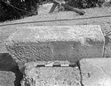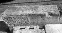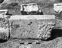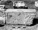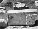 | Description: | Left hand end of block preserved, broken at right. One of several step blocks from the Square Peristyle Building reused for retaining wall in forecourt of the Royal Stoa. Front face much worn but preserves traces of finished surfaces along left and bottom edges with remaining portion of face raised slightly. Top of block preserves finished tooth chiseled surface at left, raised werkzoll worked with point at right. Bottom of block is finished at left for a distance of ca. 0.75m. and along a strip toward front edge of block; remaining surface is left raised and roughened, finished coarsely with a point. Hard travertine-like limestone. Cf. A 4768-A 4771, step blocks of South Stoa II, and blocks in situ at N.E. corner of Square Peristyle Building. | |
