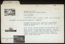Description:   Fragment of the lower part of a Corinthian capital. Part of the bottom surface is preserved, and most of two of the acanthus leaves. Broken away above.