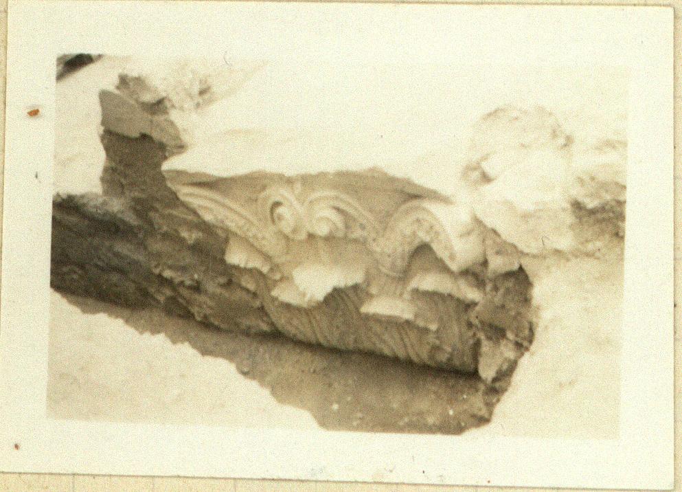 | Description: | Front face: at the bottom five acanthus leaves from which rise stalks to form the volutes. Ornament in center of abacus missing. Front line of abacus concave. Back face, broken away at the top; on the lower part a projection, which tied into the wall. On either side of this, corner leaves corresponding to those on the front face, with similar smaller leaves next to them. Pentelic marble. | |