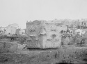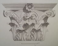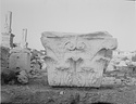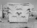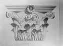 | Description: | Front face: at the bottom five acanthus leaves from which rise stalks to form the volutes. Ornament in center of abacus missing. Front line of abacus concave. Back face, broken away at the top; on the lower part a projection, which tied into the wall. On either side of this, corner leaves corresponding to those on the front face, with similar smaller leaves next to them. Pentelic marble. | |