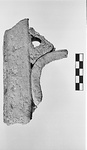 | Description: | Broken at bottom and both ends. Flat top and arched opening, made in one piece. Tile pierced at either side of top of arch. Coarse red clay. A similar piece, 0.066m. thick, but of different series, found in well at 79/ΜΗ. In Tin. | |