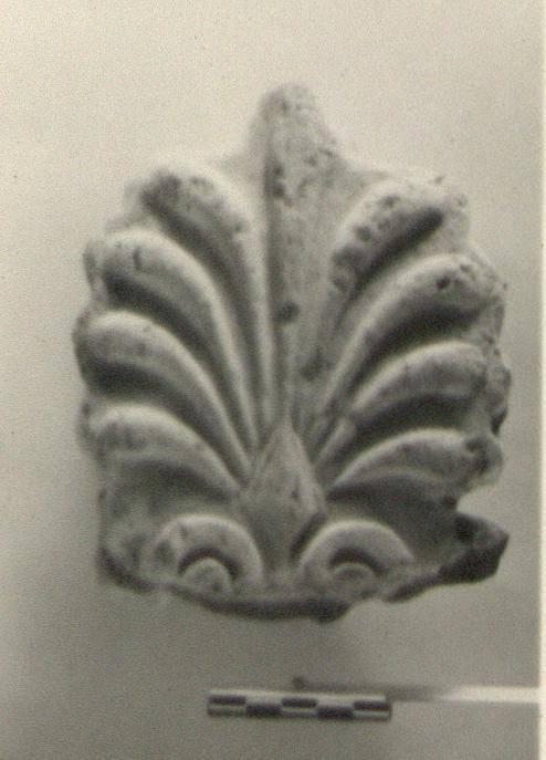 | Description: | Simple relief palmette. Bottom broken away. Coarse red clay, buff slip. | |