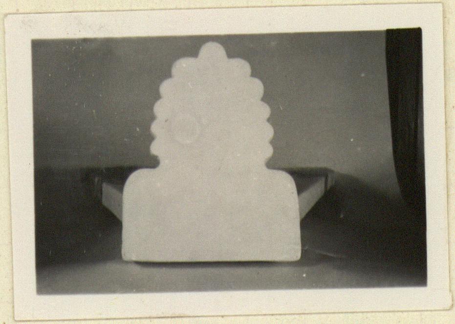 | Description: | A triangular rain tile from Tholos, its upper edge concave and provided with a low ridge on top; its lateral edges deeply channeled on underside; the spring of an antefix on the fragment nearest the apex is preserved. Buff clay, tempered with crushed tile and lightly surfaced with yellow clay. This series is definitely attributed to the Tholos from its style and fabric. All recognizable pieces, A 866 (Ζ1542), A 867 (Ζ 1543) and A 868 (Ζ 1544), are catalogued herewith. Restored in plaster with antefix. | |